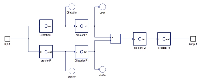 The Closing Opening Difference Operator (CODO) algorithm block contains C function blocks which calculate the fault filtering signal according to the model based on mathematical morphology (MM). MM is a nonlinear signal transformation tool for non-periodic transient signals. The mathematical calculation involved in MM includes only addition, subtraction, maximum, and minimum operations - suitable for real-time application. MM comprises two basic operations – dilation and erosion. Basic definitions of MM operators are listed below: