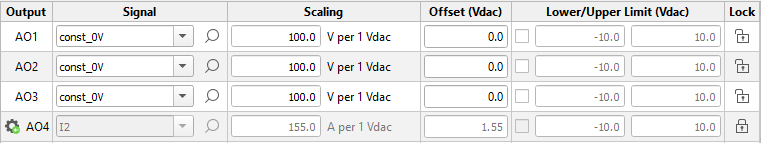 - In the Model Settings Dock in HIL SCADA, under the Model Settings Tab in Output Controls → Analog Outputs