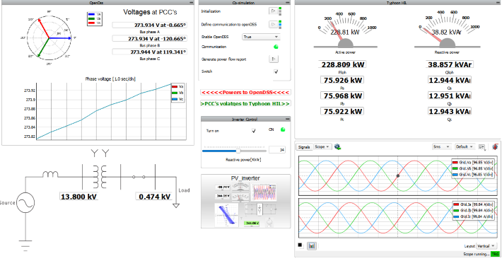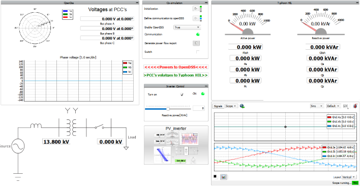 Demonstration of a simple power-flow analysis of a PV Plant using OpenDSS and Typhoon HIL real-time co-simulation.