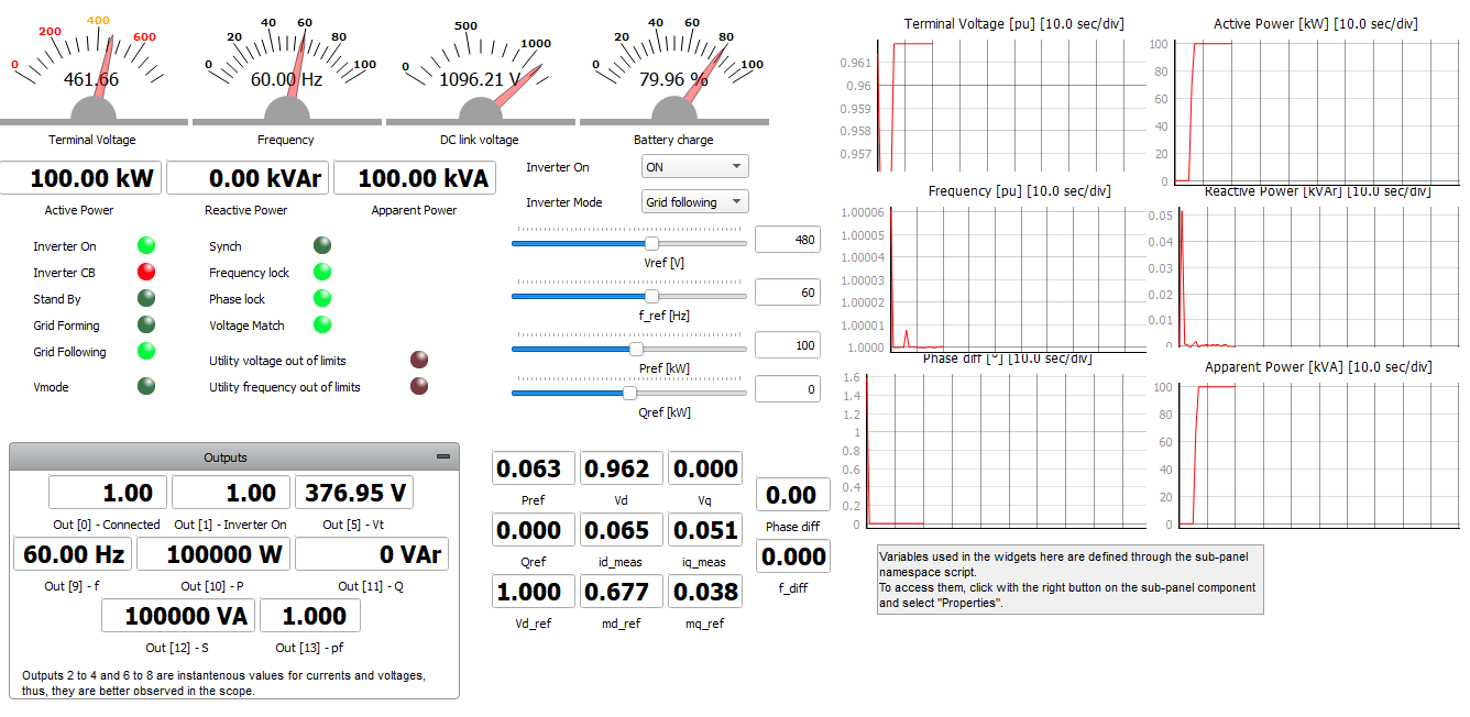 This application comes with a pre-built SCADA panel (Figure 5). The panel offers most essential user interface elements (widgets) to monitor and interact with the simulation in runtime.