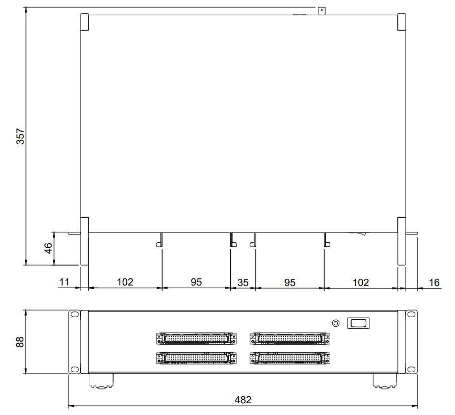 HIL606 devices feature four DIN41612 male type C connectors. These connectors are marked with a name (e.g. Analog I/O) and a pin number (1 and 32).