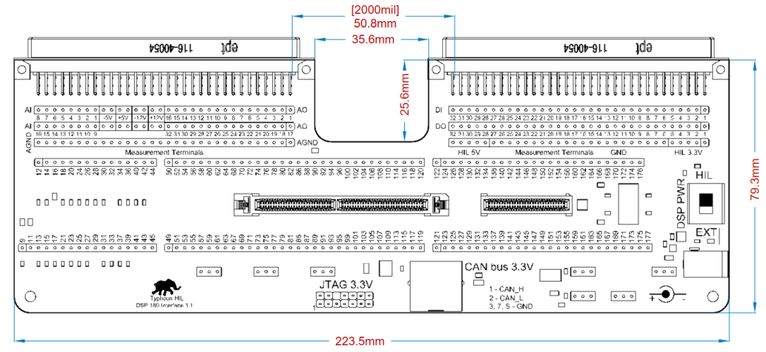 Dimensions and mechanical guidelines for the HIL DSP 180 Interface.
