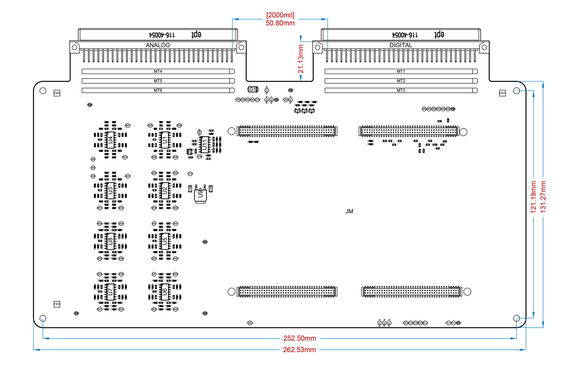 Dimensions of the TriBoard Interface board are given in Figure 1.