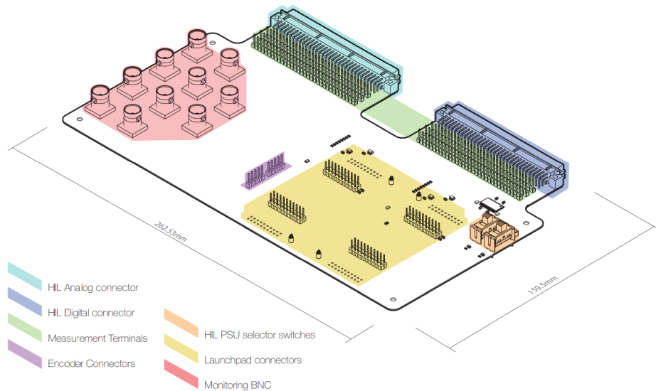 For easier access to the signals from the HIL setup, a total of 10 BNC, and a total of 192 measurement terminal posts are provided on the HIL TI Launchpad Interface.