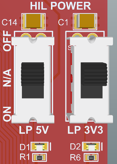 Power selection is performed via two switches, labelled as "HIL POWER".