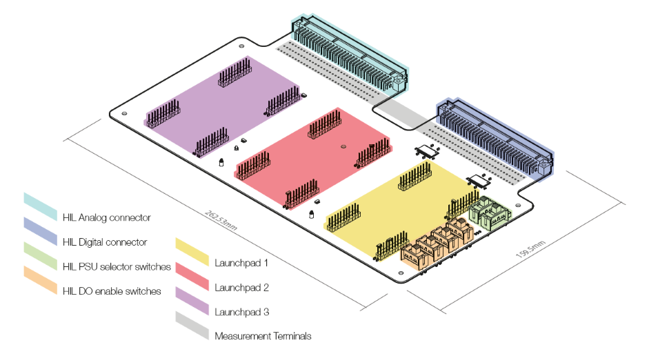 For easier access to the signals from the HIL setup, a total of 192 measurement terminal posts are provided on the HIL TI uGrid Launchpad Interface.