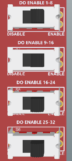 A total of 32 HIL digital outputs are level shifted from the HIL’s 5V to DSP’s 3.3V, using an SN74LVCH16T245 level shifter. Level shifter outputs can be enabled/disabled via the enable switches, shown in Figure 2.