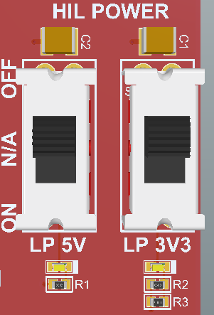 Power selection is performed via two switches, labelled as "HIL POWER".