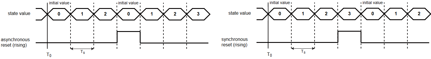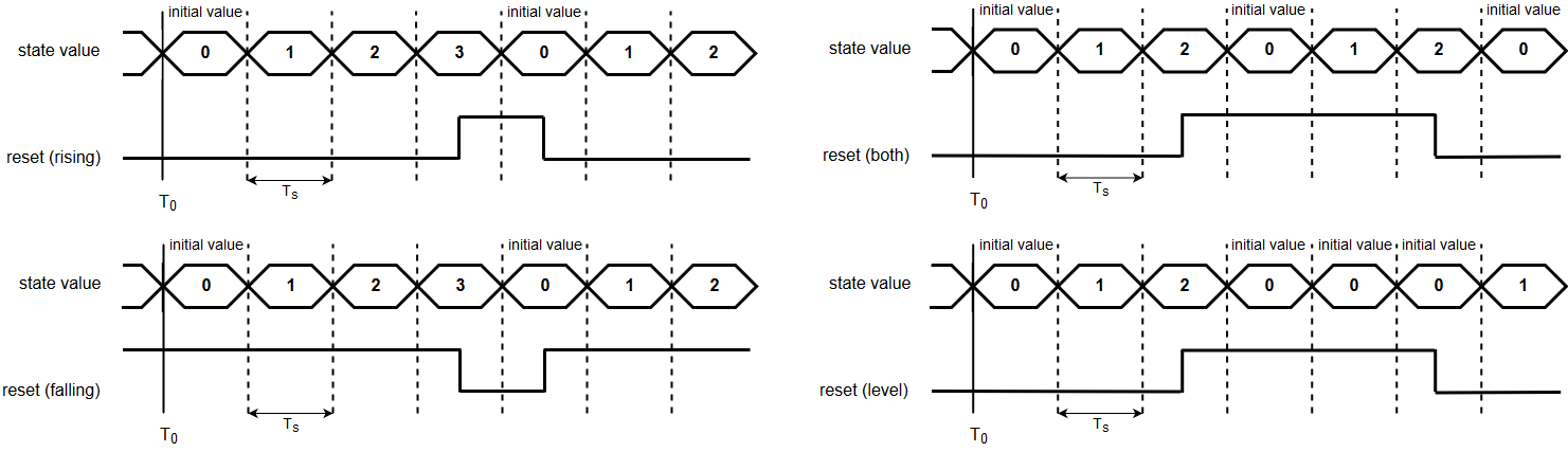 - Level - the state value remains the same as the initial value as long as the reset signal is not 0 (zero) (Figure 3, bottom right)