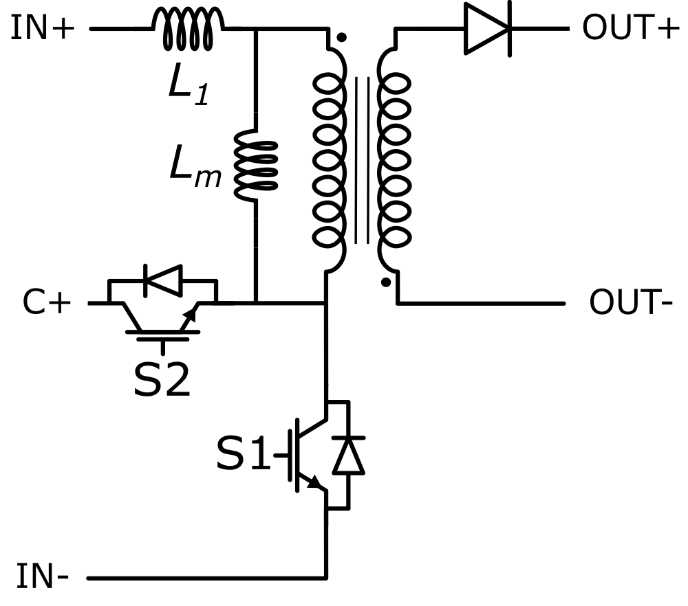 A schematic block diagram of a Active Clamp Flyback converter component with corresponding switch naming is shown in Figure 2.