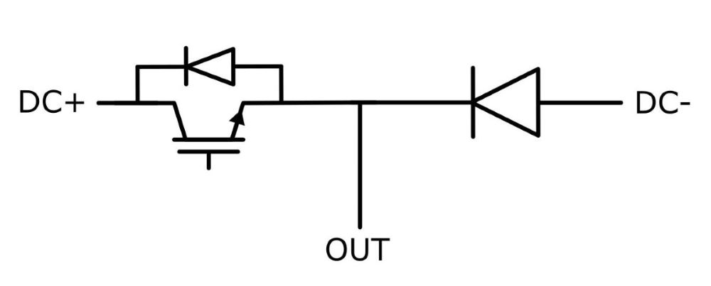 Selecting Model as the Control parameter, enables setting of the IGBTs gate drive signals directly from the signal processing model. The input pin gates appears on the component. It is a 1-element vector input, where the first value (index 0) controls the S1 gate. When controlled from the model, logic is always active high.Digital Alias
