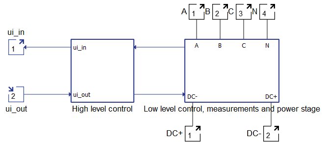 The component consists of two main parts: a high level control subsystem and a low level control subsystem with a power stage and necessary measurements included.