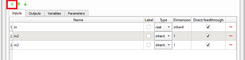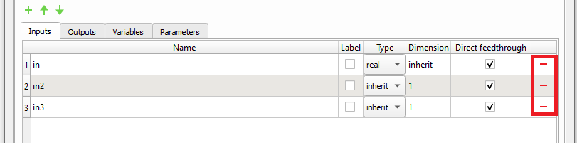 You can use the Dimension column to define the terminal’s signal dimension. The signal dimension can be either inherit or an integer number (e.g., 1). Similarly to the signal value type, the signal value dimension inherit has different meanings for input and output terminals.