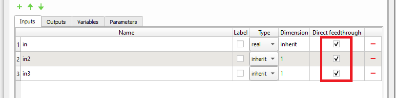 For further information about direct feedthrough terminals, please refer to the Component Sorting and Algebraic loops documentation.