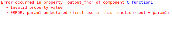 To make an external variable visible within the C function component, you must declare it inside the parameters table (Figure 7), otherwise an error will be raised (Figure 9).