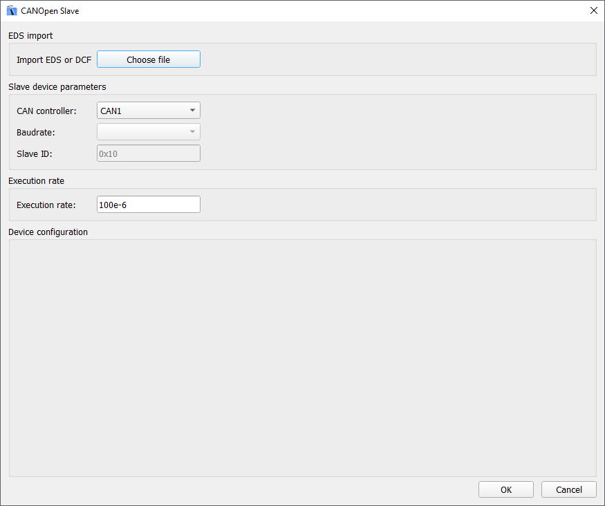 The CANopen Slave component can be configured only by importing .eds or .dcf files.