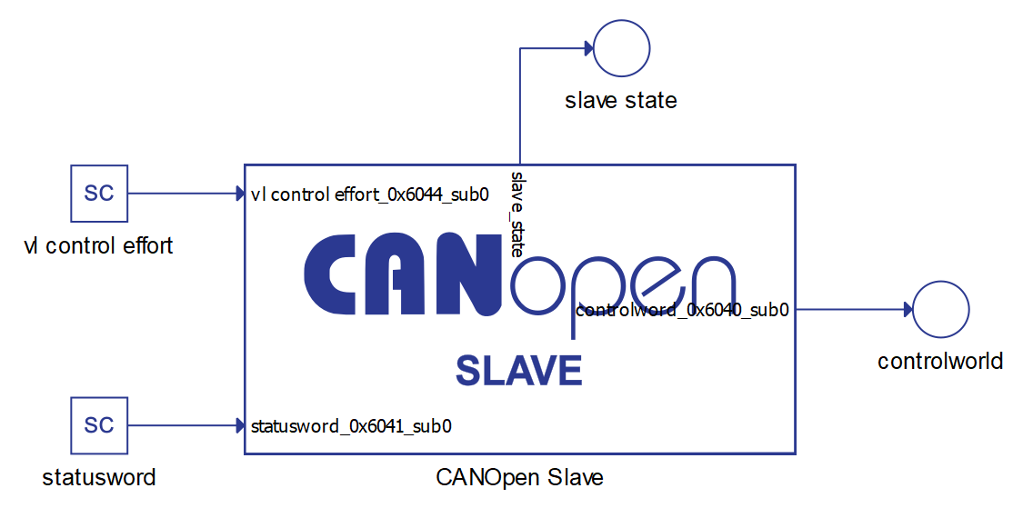 Currently, only CANopen Slave is implemented. CANopen Slave is implemented as a Signal Processing component and can be found under Communication/CAN/CANopen/CANopen Slave.