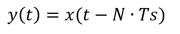 The output signal of the Delay component can be represented by the following mathematical equation, where Ts is the execution rate and N is the desired delay to be applied to the input signal: