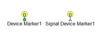 There are two types of device markers available: the signal device marker and the electrical device marker. Their functionality is the same, the only difference is where they can be connected. Signal device markers are connected to the signal processing part of the model, while electrical device markers are connected to electrical part of the circuit.