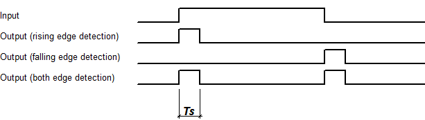 The Edge Detection component detects rising, falling or both rising and falling edges of the input signal.