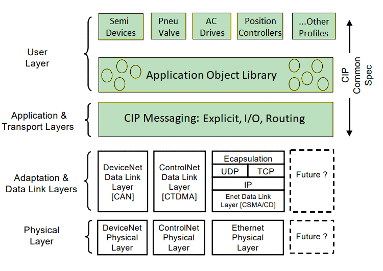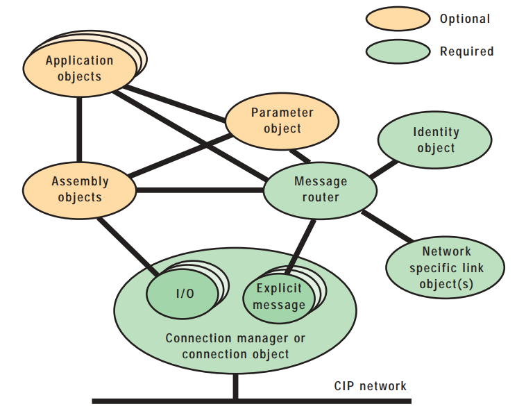 - CIP Connection and Messaging - defines the objects used for managing connections and specifies the connection types that determine how data moves over them.