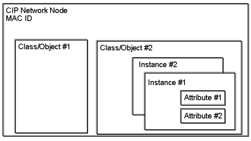 - CIP Data Representation - defines how CIP devices represent data. Data exposed over a CIP network is presented as a collection of attributes values grouped into common categories called objects. A class is a set of objects that all represent the same kind of system component. An object instance is the actual representation of a particular object within a class. Each instance of a class has the same set of attributes but has its own set of attribute values.