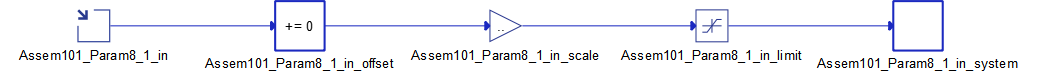 In the EDS file, upper and lower limits can be defined for a parameter. The limit component's role is to ensure that the parameter's value is always in the requested range. So, the entered value on the server side is sent to the client after applying the scaling formula. Figure 8 shows the input terminal of the Ethernet/IP Server component and the scaling components.