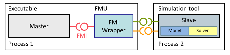 The exported FMUs behave as Slaves whereas tools that import them behave as Masters. The masters are responsible for all the data exchange and time synchronization. Also, the data exchange between the Slaves is handled via the master only. There is no direct communication between the slaves.
