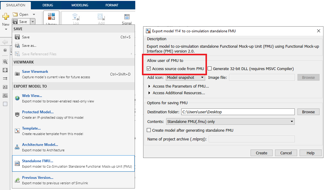 Figure 14. Export standalone FMU
