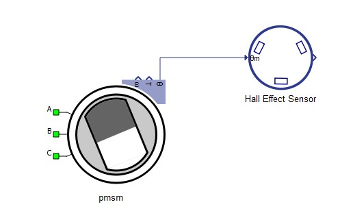 This component connects to the machine mechanical angle output as shown in Figure 2. The output of the component is a single vectorized signal processing output which contains digital signals Hall A, Hall B and Hall C.