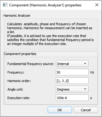 The input signal is sampled with this execution rate. Results of the Harmonic analyzer will be more precise if the period of the fundamental harmonic of the signal is divisible by this execution rate (the ratio is an integer number).