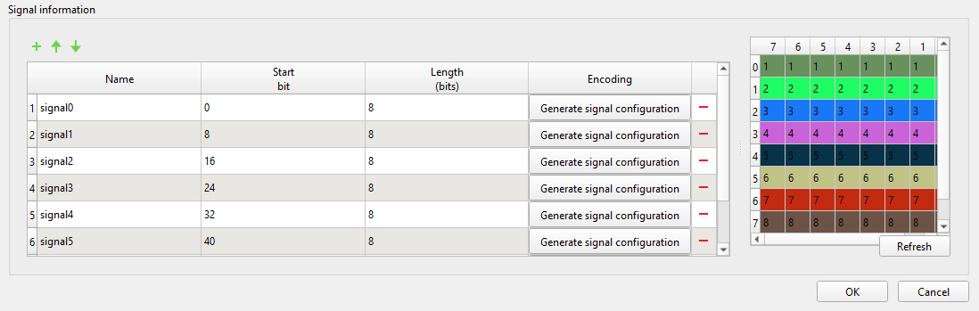 - Encoding - When clicked opens up the Generate signal configuration window that specifies signal encoding of that particular signal.