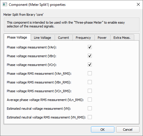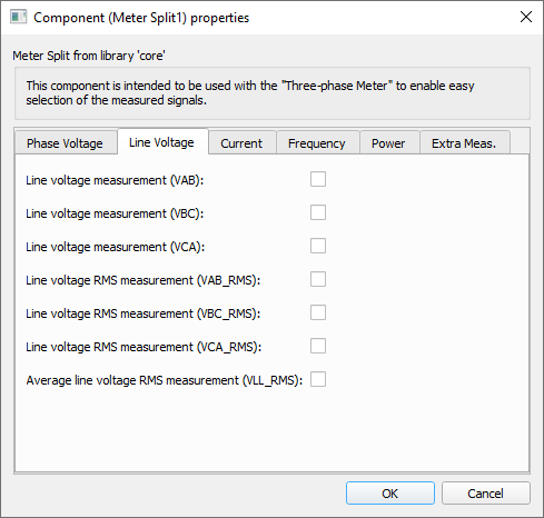 | Line voltage measurement (VAB) | vab | Checkbox that enables line AB's instantaneous voltage measurement output |