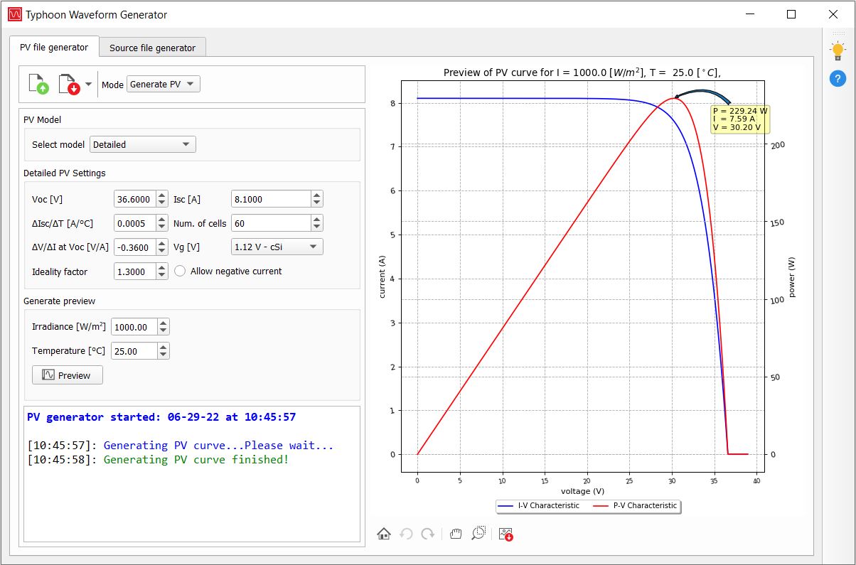 Generating I-V curves in the Typhoon HIL Waveform Generator