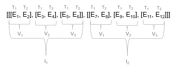 Extracted lookup tables follow a consistent structure. When using 2D look up tables, current values are on the x-axis and temperature values are on the y-axis of the look up table. An example of the general 2D look up table for current values [I1, I2, I3, I4] and temperature values [T1, T2] is shown in Figure 10. It can be concluded that energy loss E1 is related to current I1 and temperature T1, E2 also to current I1, but temperature T2, E3 to current I2 and temperature T1 and so on. An example of the general 3D look up table for current values [I1, I2], voltage values [V1, V2, V3] and temperature values [T1, T2] is shown in Figure 11. In this case energy losses from E1 to E6 are related to current I1. Within that, E1 and E2 are related to voltage V1, E3 and E4 are related to voltage V2, and so on. Finally, E1 is the switching energy related to temperature T1, E2 is related to temperature T2, E3 is again related to T1, and so on.