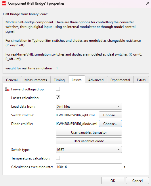 The last field is the losses execution rate, which represents rate at which losses are calculated. It is good practice to set this value to the PWM switching period or higher.