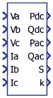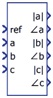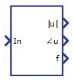 Calculates phasors (magnitude and angle) of the input signals. | real | real | no | Three Phase Phasor |