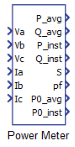The Power Meter component is based on instantaneous power theory. Conventional power theory uses voltage and current rms values to compute power values, which makes it valid only for steady state analysis. Instantaneous power theory, on the other hand, utilizes instantaneous voltage and current values to compute instantaneous real, reactive, and zero power. Consequently, this theory is useful for both transient and steady-state analysis, which is more suitable for power electronics applications.