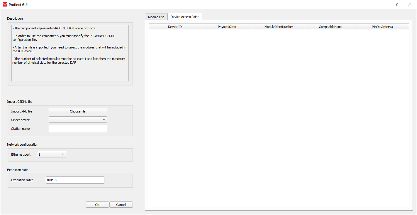 The PROFINET IO Device component, which can be found under the Communication tab, implements the IO Device functionality of the PROFINET protocol. In the Component Dialog window, different properties are defined, as shown in Table 1.