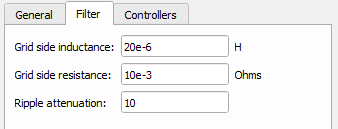 In this component tab, you can specify LCL filter parameters of the PV inverter model.