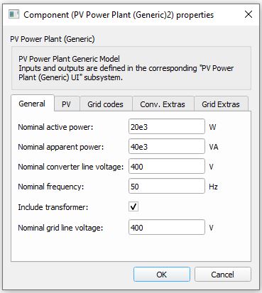 In this component tab, parameters that are related to the PV side of the converter can be specified.