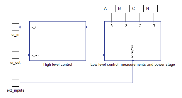 The component consists of two main parts: a high level control subsystem and a low level control subsystem with a power stage and necessary measurements included.