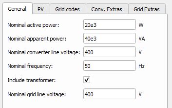 In this component tab, the general parameters of the PV and the grid can be specified.