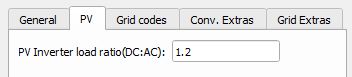 | PV Inverter load ratio (DC:AC) | ILR_factor | Factor that determines the ratio of the power that PV panels are capable of producing (DC) at STC (standard test condition - 25ºC and 1000W/m2) and nominal power of the inverter (AC). |
