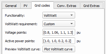 | VoltWatt requirement | voltwatt_req | Allows for defining voltage and active power points. Currently, only the Custom option is supported. |