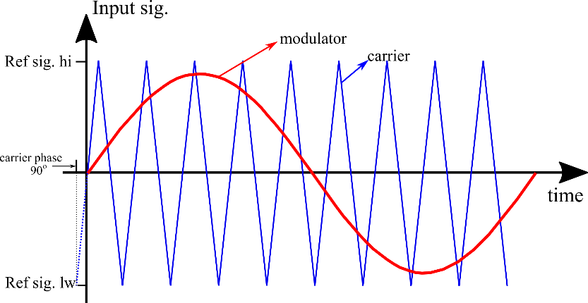 Figure 3 illustrates a PWM signal generated through the comparison between the reference (modulator) signal and the sawtooth-rising carrier signal.