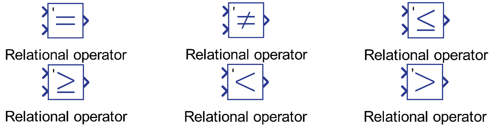 Description of the Relational Operator components in Schematic Editor, which performs comparisons between two input signals.