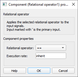 The Relational Operator component performs the comparison defined in relational operation property between two input signals.