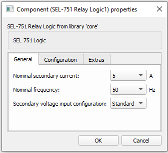 In this component tab, general parameters of the SEL-751 Relay Logic component can be specified.