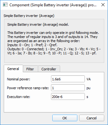| Execution rate | Ts | Execution rate of all signal processing components of the battery inverter model. [s] |